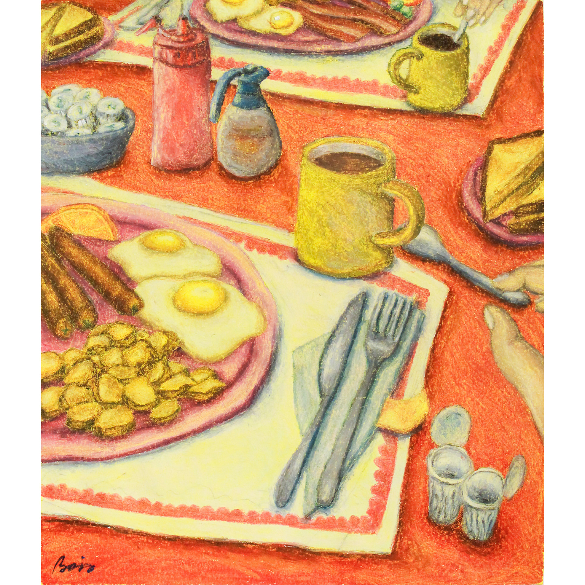 Pastels à l'huile sur papier